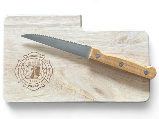 Feuerwehr Schneidebrett mit Gravur und Messer