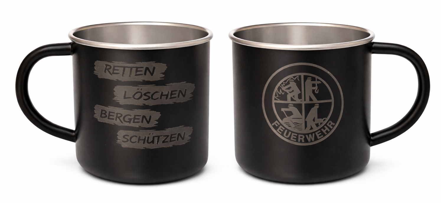 🔥 Edelstahl-Becher „Retten – Löschen – Bergen – Schützen“